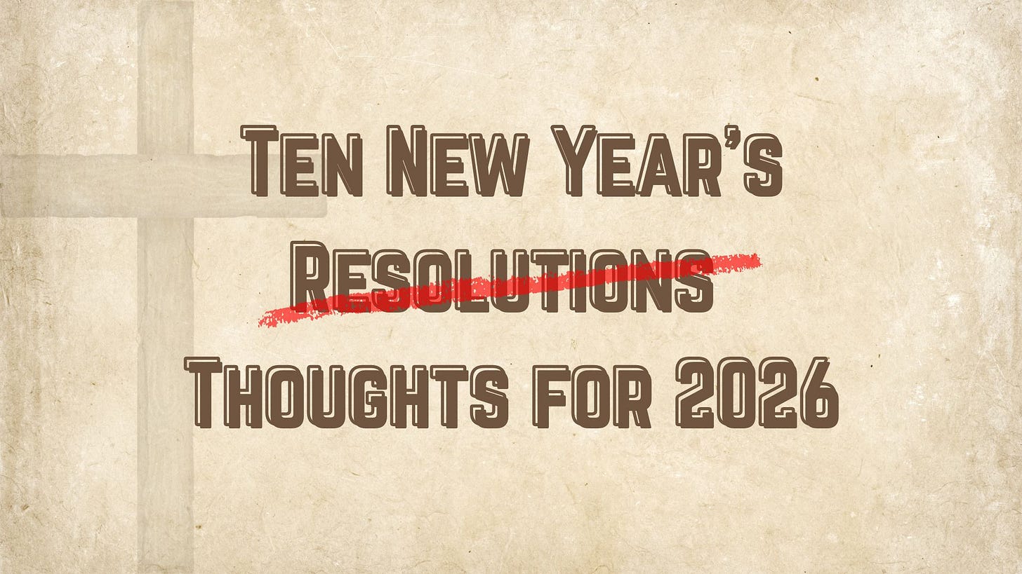 Stan and Doug's NewsTen New Year’s Thoughts for 2026Do you make New Year's resolutions? And if you do, do you even remember them at the end of the year?Stan GuthrieJan 01, 2026ShareI'd like to offer 10 biblical thoughts (in no particular order) that can help us to focus on things that we know God cares about—and that therefore we should care about. They are not resolutions, exactly, but I hope they will encourage us to set our minds on things above (Colossians 3:1-4). It will be impossible to change your life in all 10 areas in 2026. But one or two would be nice!PreviousNext